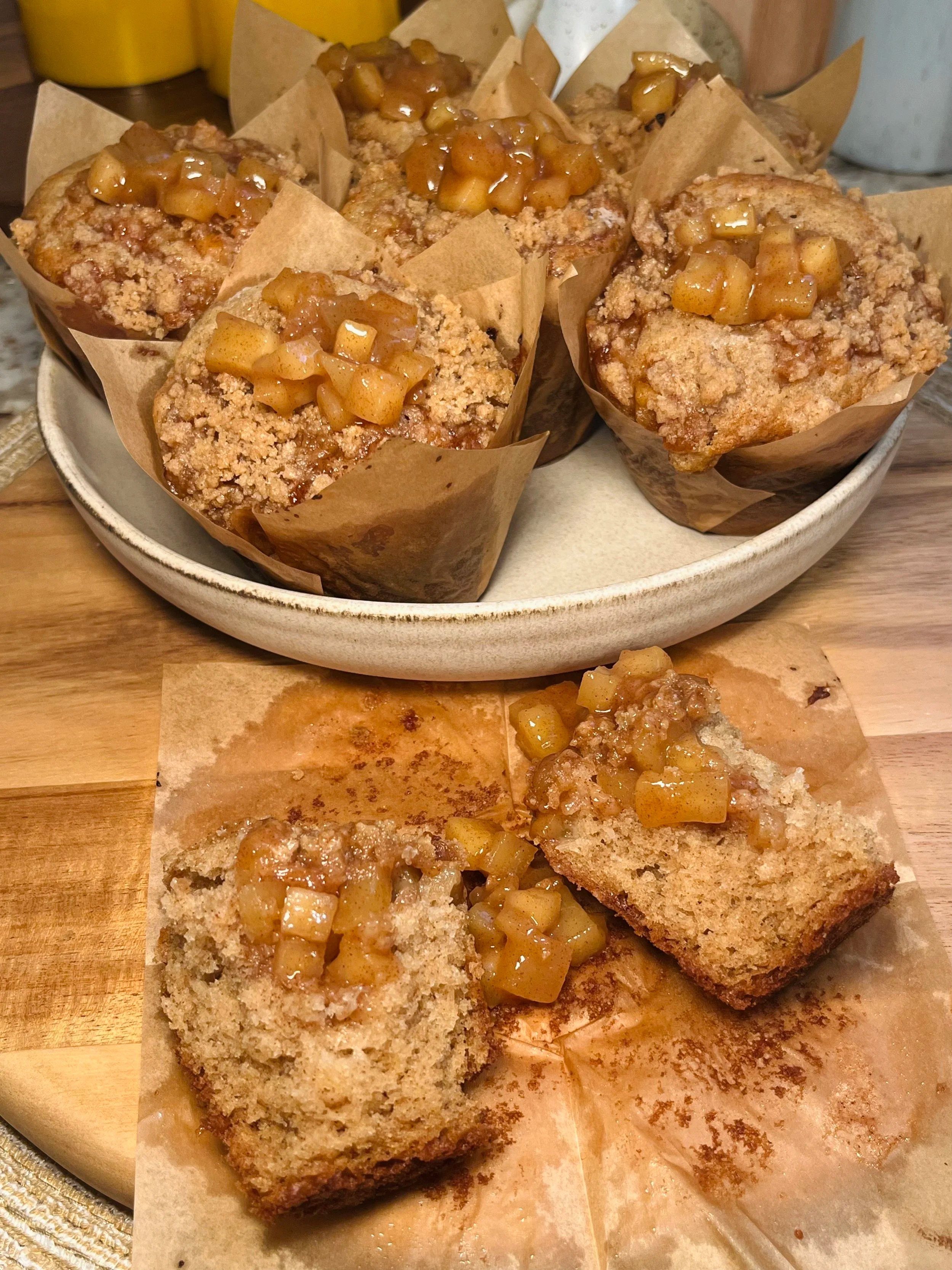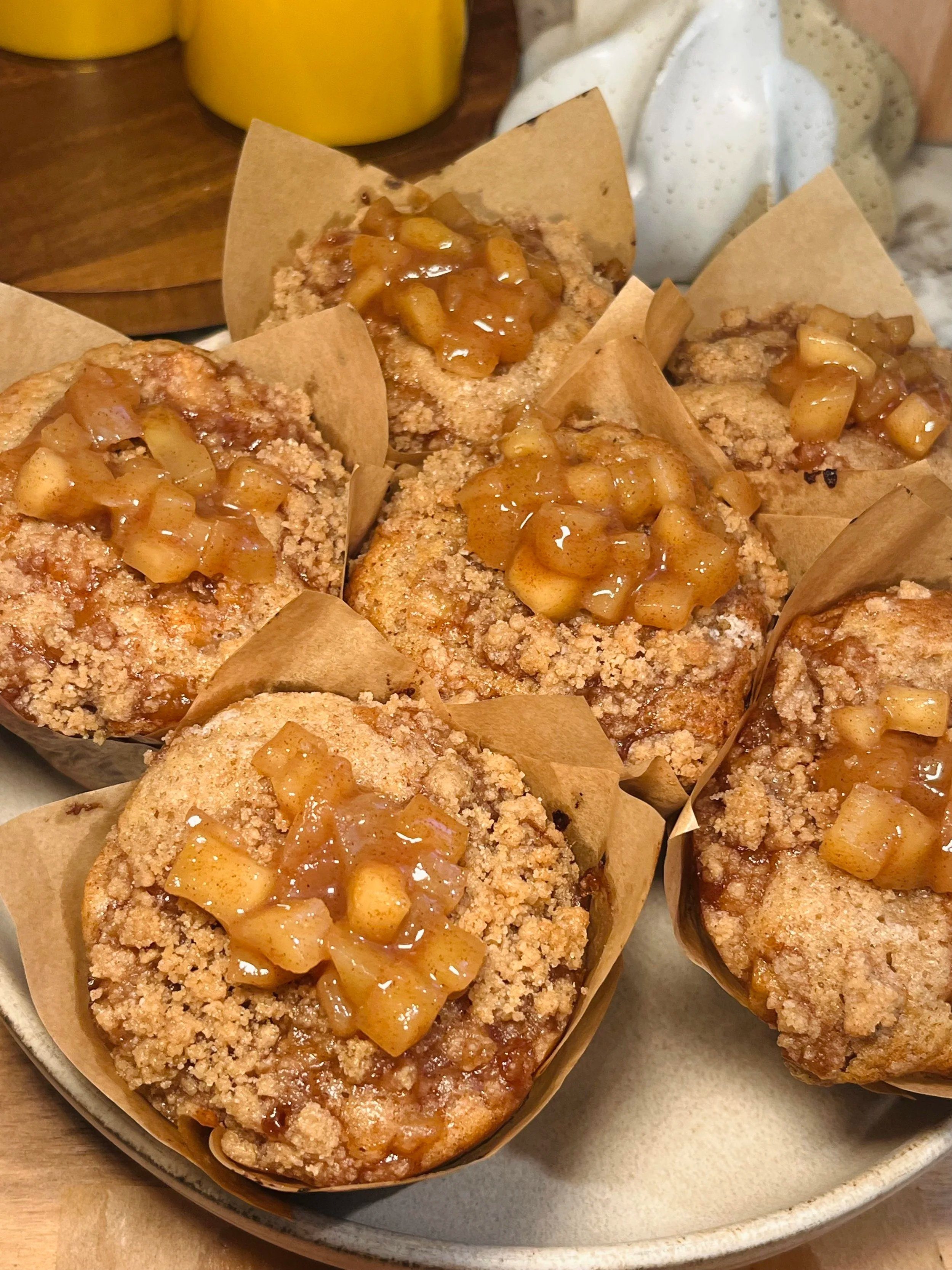 Fill each muffin liner a little over halfway with batter (about 3/4 full). Spoon about a tablespoon of the cooled apple filling on top of the batter, followed by a generous tablespoon of the prepared crumble. Bake at 425°F for 5 minutes, then reduce the oven temperature to 350°F and bake for another 11-14 minutes, or until a toothpick inserted into the center comes out clean.