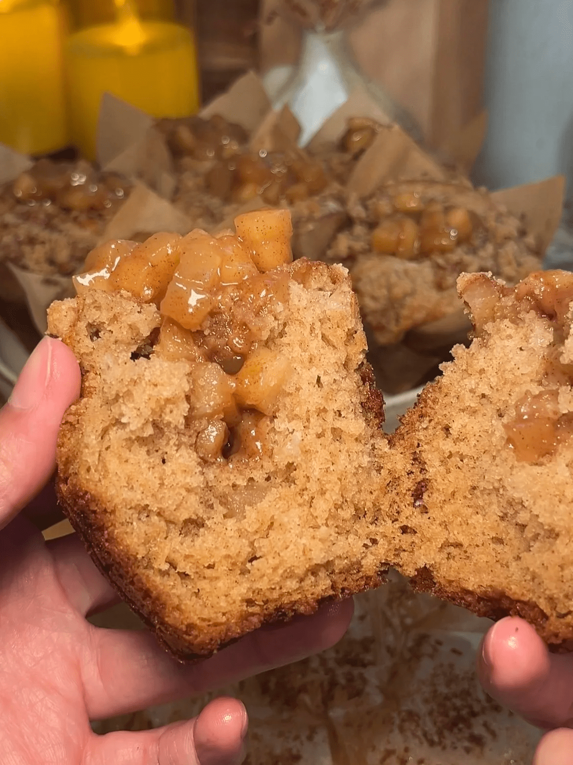 Next, a generous spoonful of apple pie filling is added to each muffin, bringing a burst of tender, spiced fruit right into the center. This layer of warm apples ensures that every bite is filled with that familiar, comforting taste of homemade pie. To top it all off, a buttery and crunchy crumble topping is sprinkled over each muffin. As it bakes, the crumble becomes golden brown and toasted, providing a wonderful textural contrast to the soft muffin and tender apple filling. The result is a perfect hybrid dessert that combines the best parts of apple pie and muffins into a single, irresistible treat.