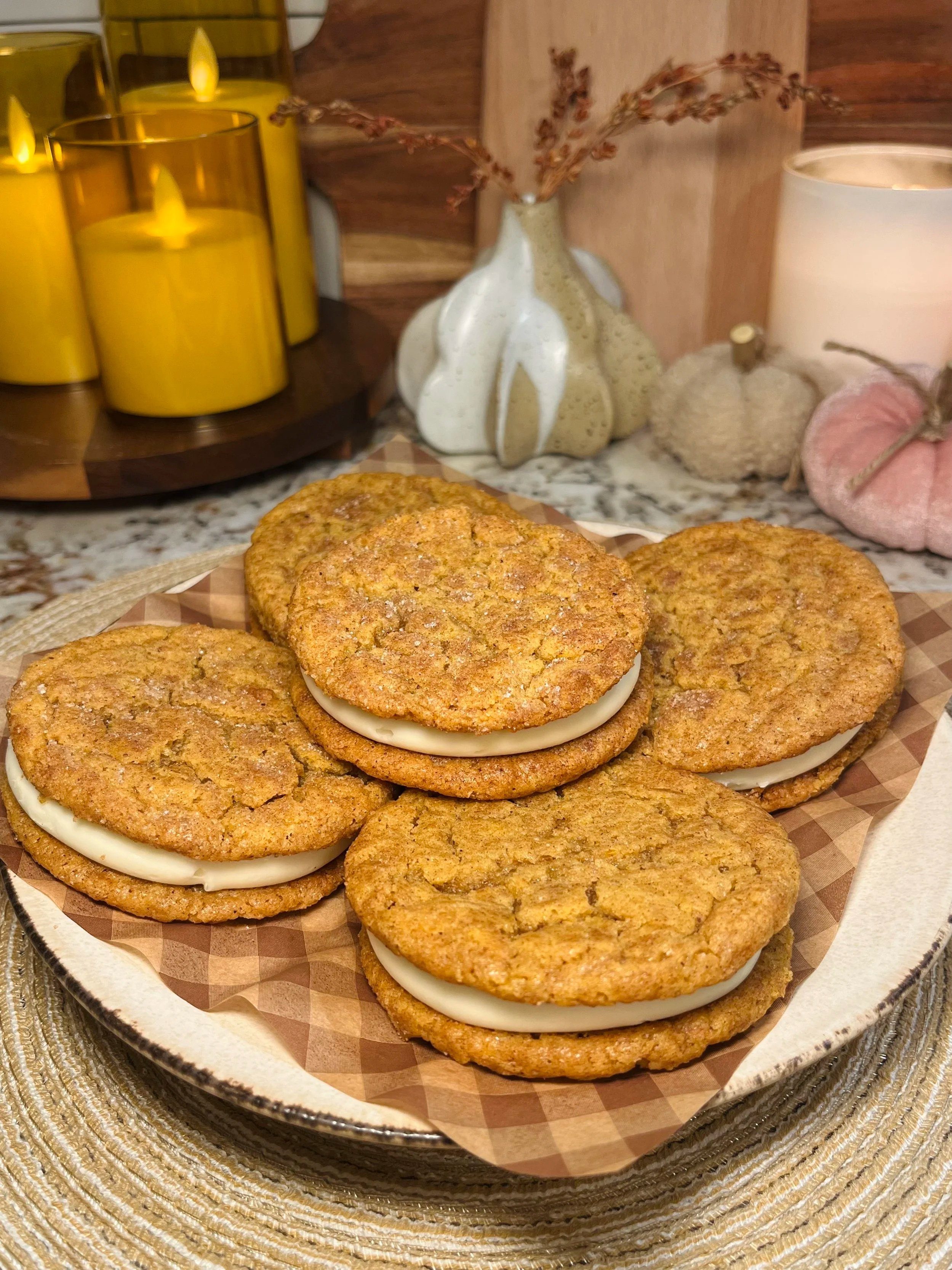 Brown Butter Pumpkin Caramel Snickerdoodle Sandwich Cookies