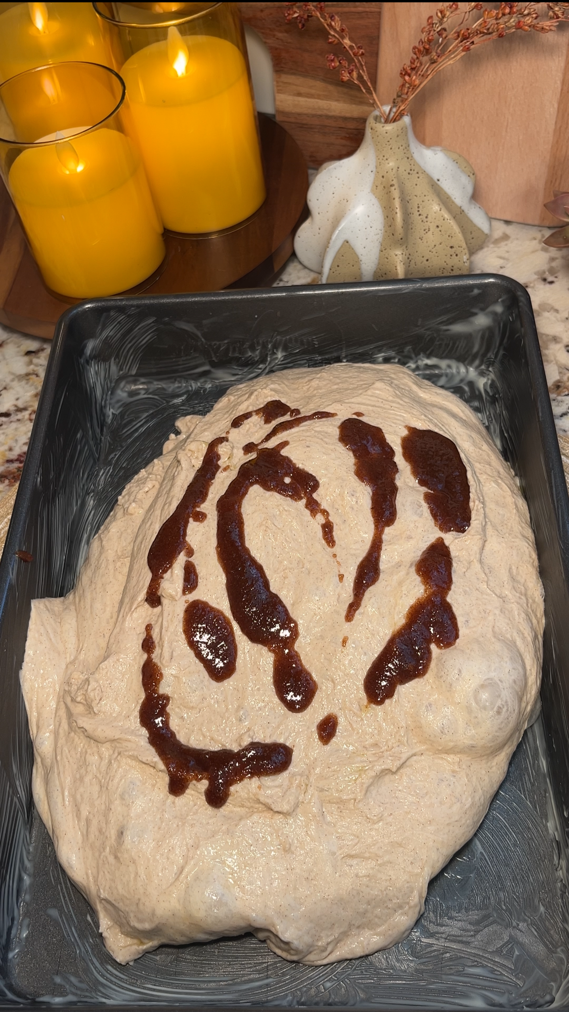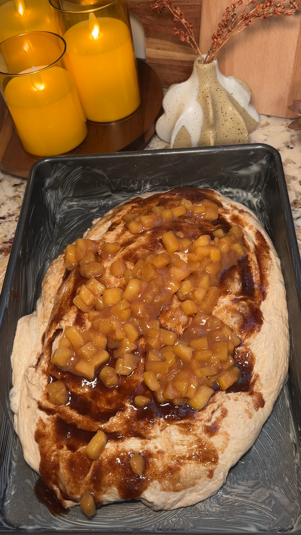 Apple fritter focaccia bread is a truly unique and delicious hybrid, combining the soft, airy texture of a classic Italian bread with the warm, comforting flavors of a homemade apple fritter. The process starts with a simple focaccia dough, but with a special twist: a generous amount of cinnamon is mixed in, infusing the bread with a warm, spiced aroma right from the beginning. This provides the perfect foundation for the sweet apple filling. The deliciousness continues as the dough is pressed into a pan and then topped with a cinnamon-sugar butter mixture and spoonfuls of rich, homemade apple pie filling.