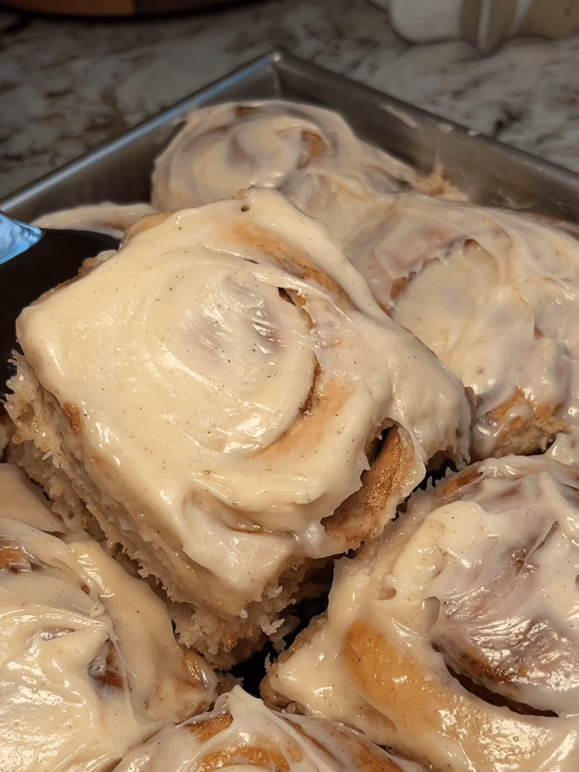 Spread the icing generously on the warm rolls. Serve & enjoy!