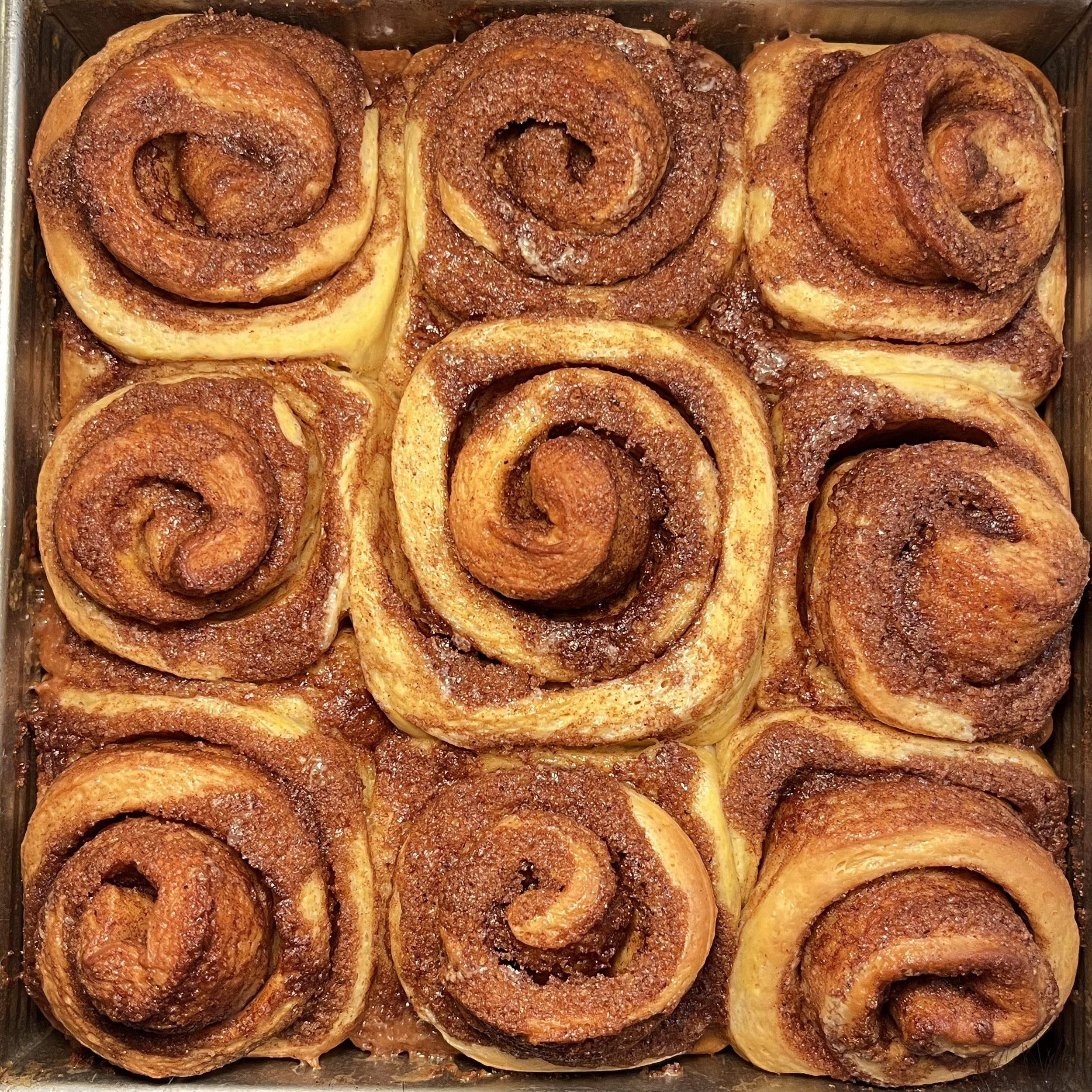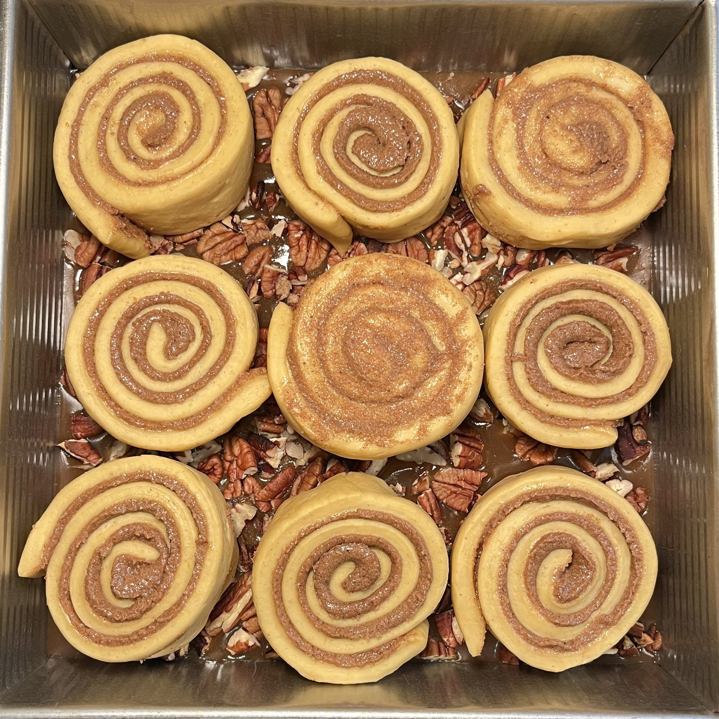 Once all the rolls are shaped, rest the pan in a warm spot for another 45 minutes to an hour until they are doubled their size and there are barely any gaps in between each roll.