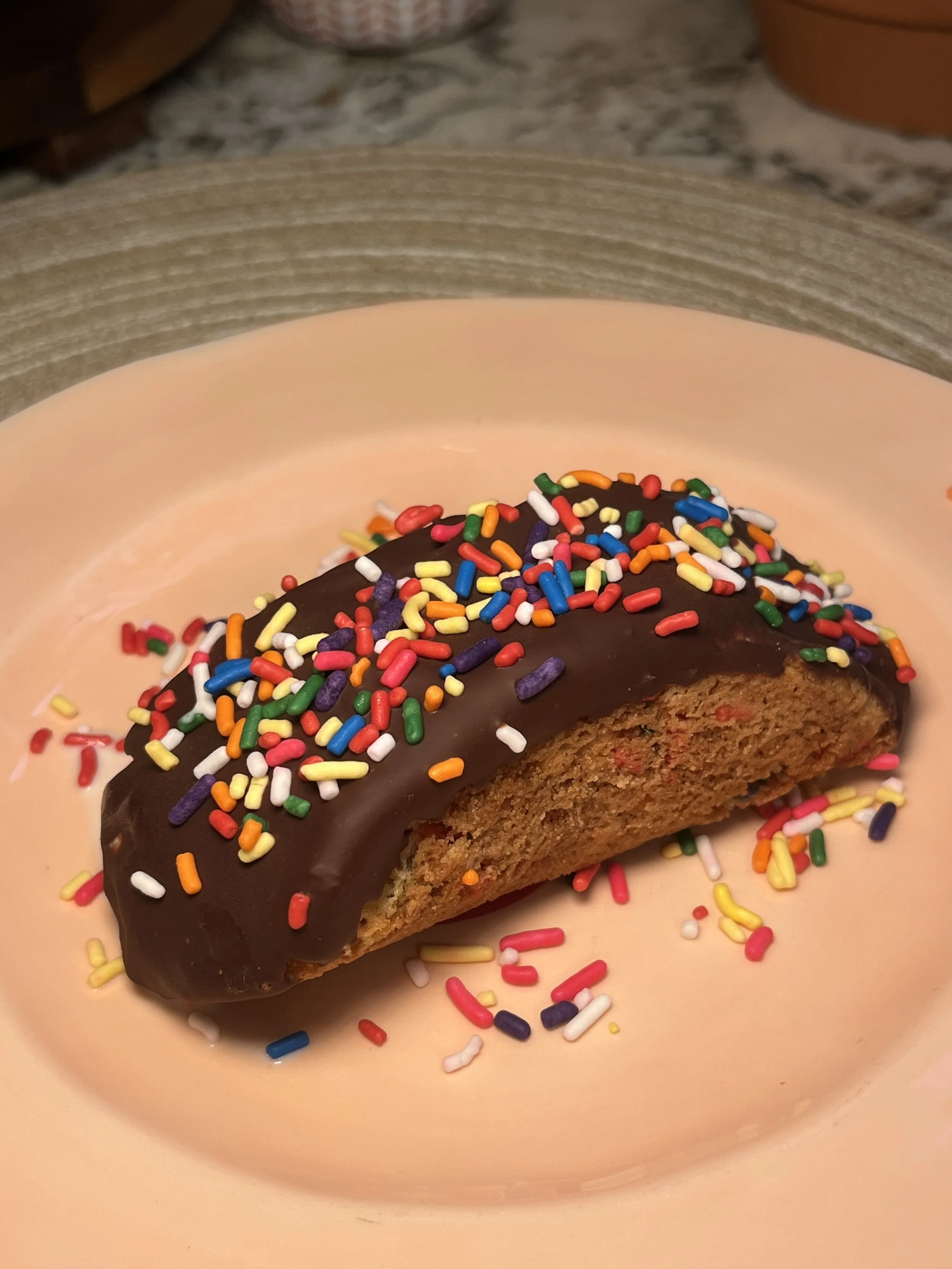 Before your chocolate shell sets, you can sprinkle on your favorite rainbow sprinkles.